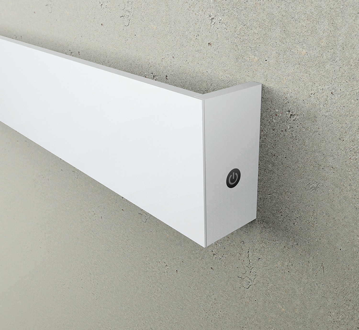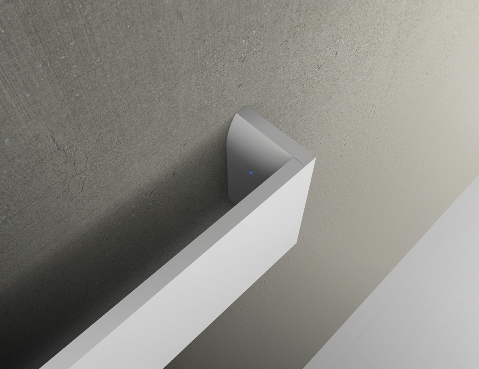 Touching the knob on the right side activates on/off and timed operation, which is indicated by an audible signal and an LED display that changes color depending on the operating status.